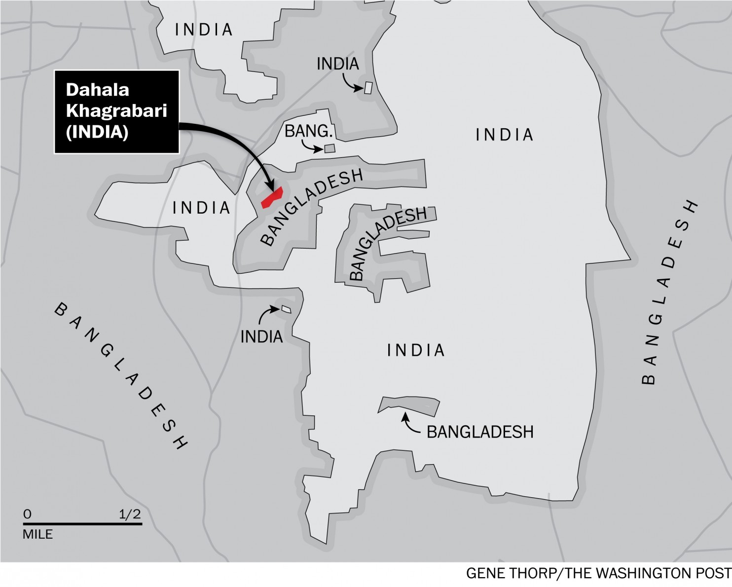 – Приграничные районы между Индией и Бангладеш и между Бангладеш и Мьянмой представляют собой невероятное хаотическое нагромождение разнообразнейших этнических анклавов общей численностью около ста пятидесяти. Анклав, тяготеющий к Индии, может быть окружен со всех сторон Бангладеш, а поселения с пробангладешским населением – группой анклавов, ориентирующихся на Мьянму. Свое вперемежку с чужим, классическая чересполосица, уходящая корнями в XVIII век и в спешные соглашения, которые местное княжество Куч-Бихар заключило с надвигающимся войском Великих моголов. Например, местность Дахала-Кхаграбари принадлежала Индии, но была окружена пробангладешским анклавом, который, в свою очередь, был окружен проиндийской территорией, окольцованной Бангладеш. В свете постоянного перемещения по региону трудовых мигрантов и необходимости обеспечения населения жилищно-коммунальными услугами, это все создавало для заинтересованных сторон большие трудности. Разрешить которые мешала только политическая инертность, ничего более. И вот сейчас эту инертность удалось преодолеть, – рассказывает Иона Бланк.