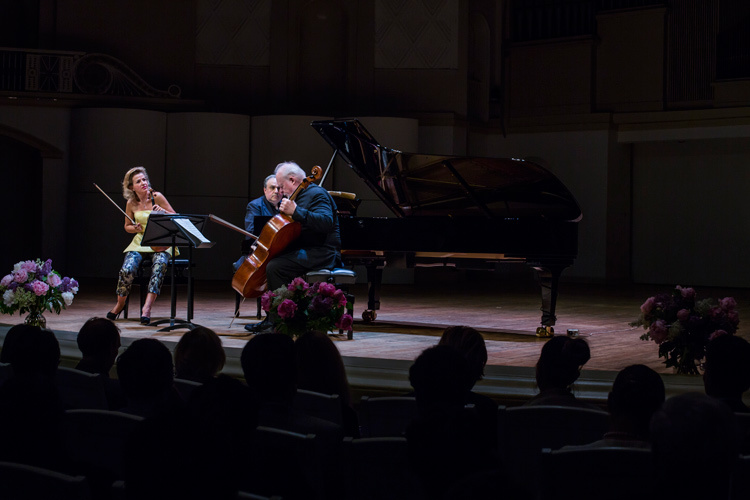 Тем не менее главным настроением вечера была не скорбь, а радость. The Mutter-Bronfman-Harrell Trio — это не давно и крепко сколоченный ансамбль, а содружество мастеров, собравшихся помузицировать вместе для собственного удовольствия, и старичок Харрелл, забывший было за кулисами ноты Чайковского, только добавил домашней атмосферы этой симпатичной ситуации.