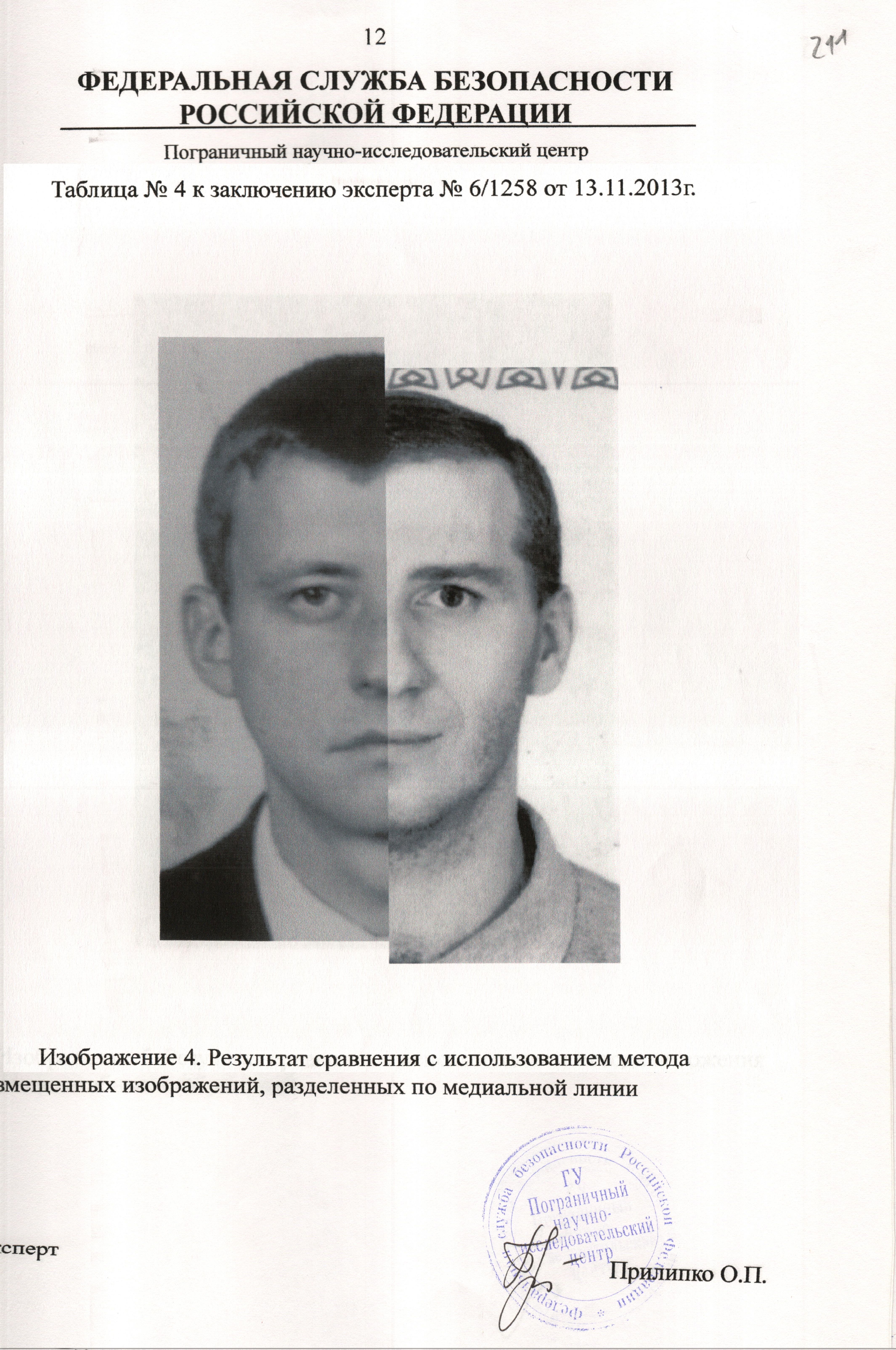 Основанием для смены личности обвиняемого стала экспертиза, проведенная сотрудником Пограничного научно-исследовательского центра ФСБ Олегом Прилипко. Эксперт Прилипко сравнил фотографии на паспорт, сделанные 28-летним Немовым и 30-летним Гавриленко, и пришел к выводу, что на них изображен один и тот же человек.