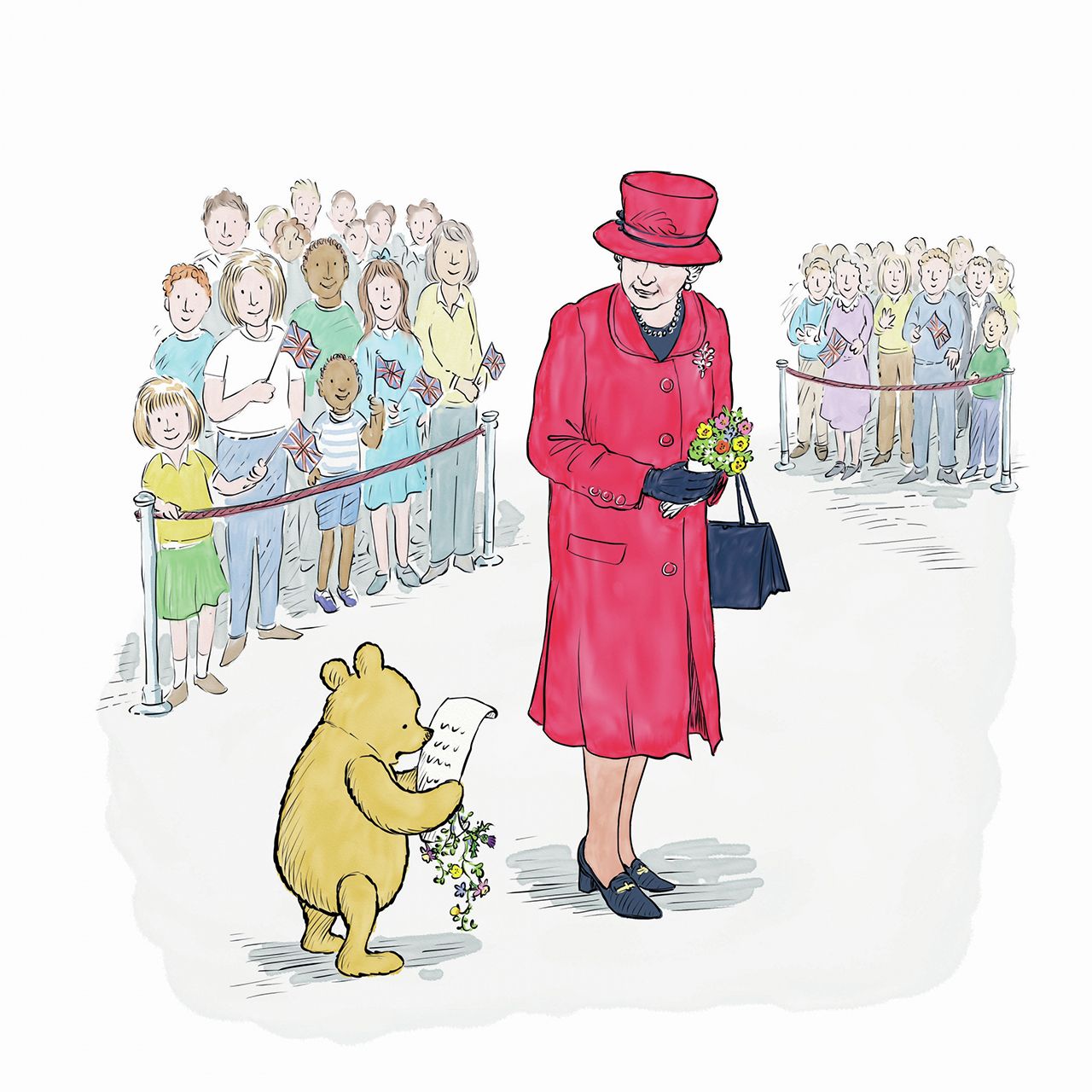 В 2016 году Винни-Пух отмечает свое 90-летие: сказка про медведя впервые была опубликована в 1926 году. Но 90 лет совсем недавно исполнилось и королеве Елизавете II. В честь двойного юбилея выходит новый рассказ «Винни-Пух и королевский день рождения», в котором медведь отправляется в Букингемский дворец. В книге Винни читает королеве стихотворение, написанное к ее дню рождения, а Пятачок дарит шарик принцу Джорджу. «Медуза» публикует несколько иллюстраций из книги, а также видеоверсию рассказа.