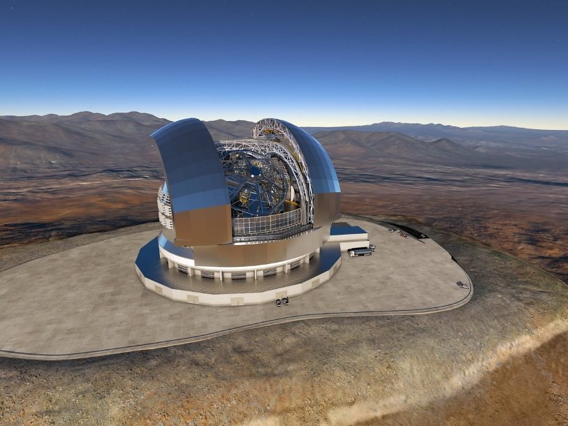 Европейский Чрезвычайно Большой Телескоп (E-ELT) с диаметром главного зеркала 39 метров станет самым большим телескопом оптического и ближнего инфракрасного диапазона в мире: поистине «величайшим оком человечества, обращенным в небо». Он будет установлен в северном Чили, в уже подготовленном для его сооружения месте.