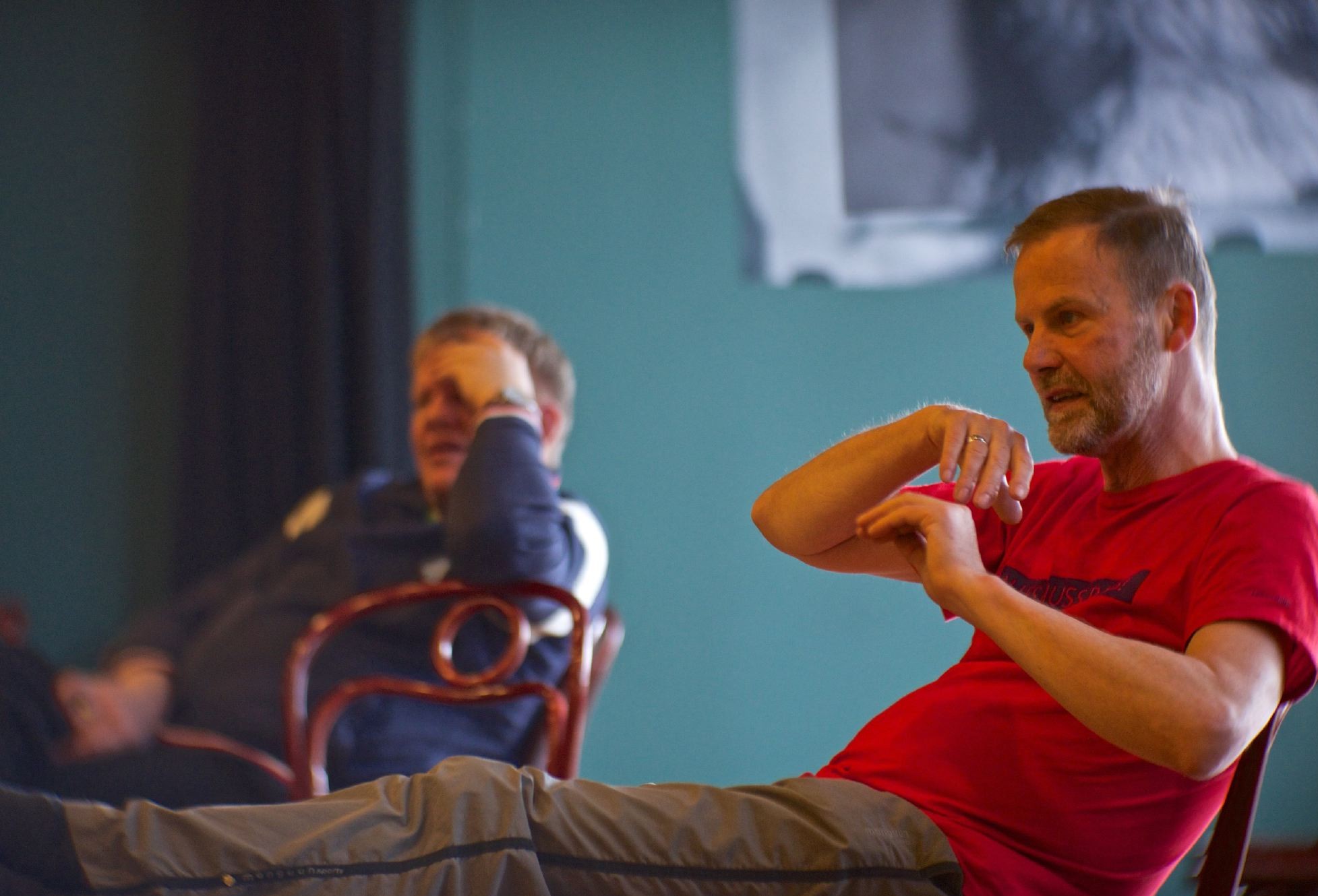 — Конечно же, мы репетируем вместе. Ведь репетиции — это увлекательное путешествие, полное открытий, на равных для всех участников. В принципе наши репетиции не так уж отличаются от репетиций в «нормальном» театре. Возможно, несколько иное значение обретает фактор времени. Но и здесь все зависит от того, кто играет. Иногда все происходит очень быстро. Например, над спектаклем, который вы видели сегодня, мы работали всего три-четыре недели. Конечно, так быстро получается, только если все знают друг друга заранее.