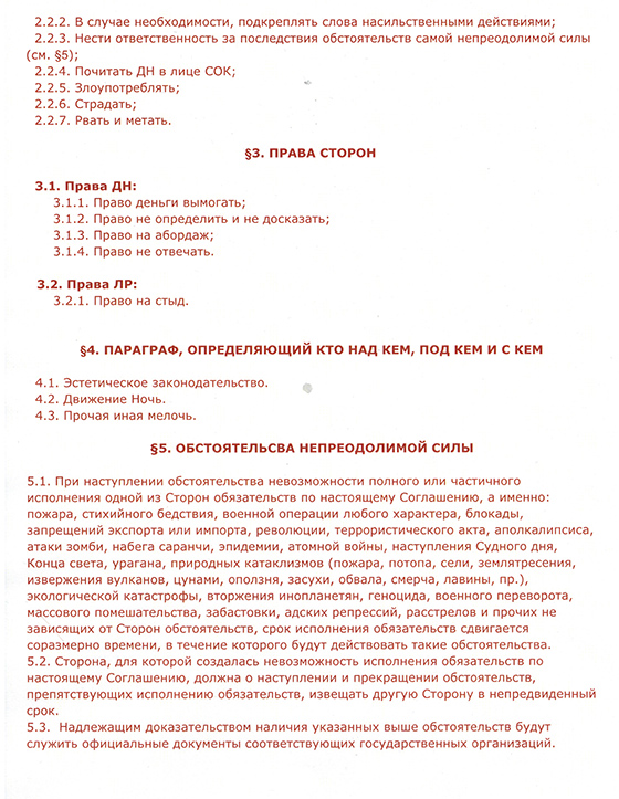 1.1. Данное Соглашение регламентирует правила отношений ДН с ЛР, решившимся пригласить ДН к написанию любого (сомнительного, провокационного, упоительного, восхитительного, омерзительного и пр.) материала в любом печатном или интернет-издании.
