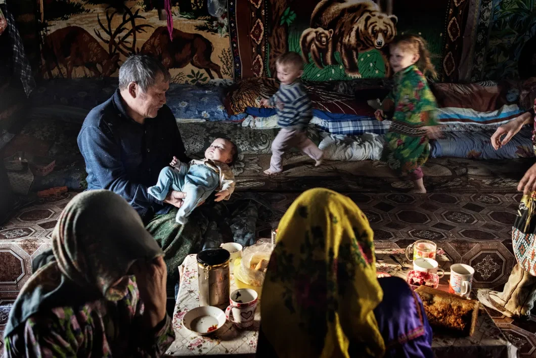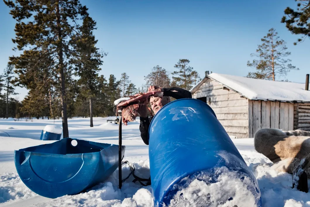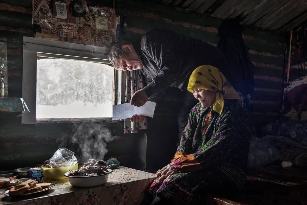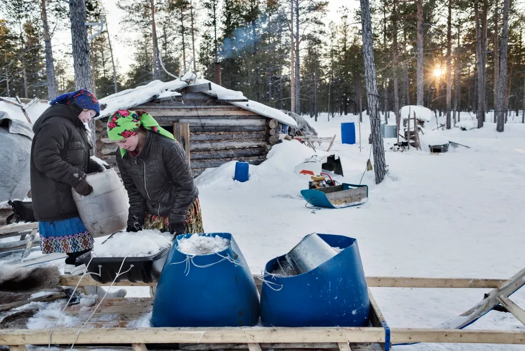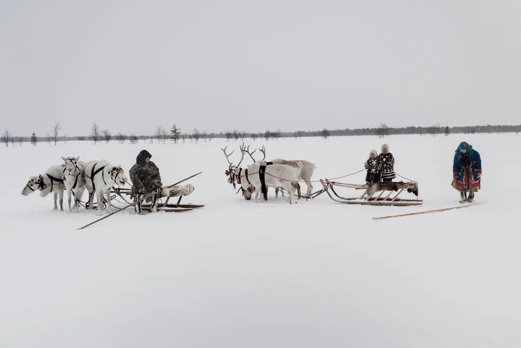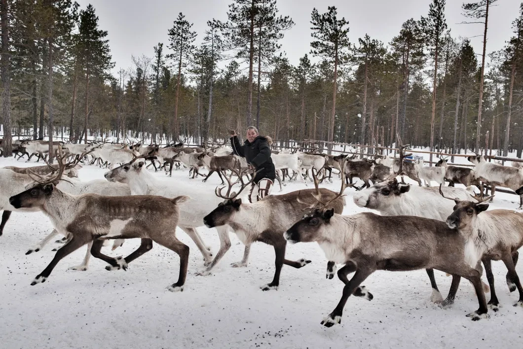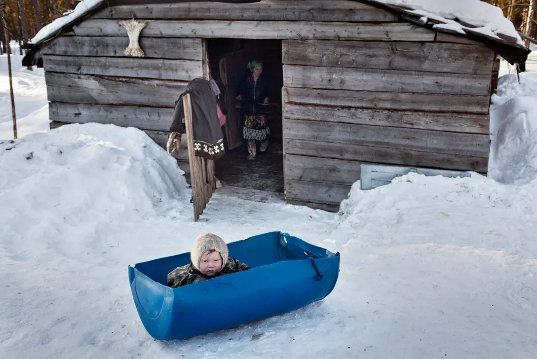 Природный парк Нумто — последнее место в ХМАО, еще не полностью занятое нефтяными разработками. Среди лесов и болот находится огромное озеро Нумто. Озеро — главная святыня для лесных ненцев и хантов, коренных жителей округа. Они считают, что это след бога на земле. Фото: Юрий Козырев / «Новая газета»Валерий Пяк — ненец, Катерина — хантыйка. Они ровесники, им по 59 лет. Женаты — 40. Валерий привез Катерину из Федоровки, за 300 километров. До свадьбы они были незнакомы. Фото: Юрий Козырев / «Новая газета»Наташа, дочка Валерия Пяка, выгоняет стадо. Фото: Юрий Козырев / «Новая газета»У Катерины и Валерия трое детей и пятеро внуков. С шести лет каждого ребенка отправляют в интернат, где он находится следующие 10 лет. Районные власти следят, чтобы дети не оставались в лесу. На фото — Катерина заплетает волосы Лиле. Фото: Юрий Козырев / «Новая газета»Жизнь в лесу предполагает ежедневный труд. Выпас оленей, заготовка рыбы, ягод, грибов и дров, выпечка хлеба. Одежду и еду лесные люди добывают себе сами, лишь раз в год выезжая в город за продуктами, тканями и топливом. На фото — Валерий Пяк забирает засоленную рыбу с осеннего стойбища. Фото: Юрий Козырев / «Новая газета»У семьи Пяк — сто сорок оленей. Свое стадо Валерий Вэкович и Катерина растили 20 лет, «из одной важенки». «Годы ушли, чтобы любоваться на них. Вся жизнь ушла». Олени — это еда, одежда, обувь, транспорт и главный смысл лесной жизни. Фото: Юрий Козырев / «Новая газета»Когда рождается ребенок, ему дарят оленя. Олени есть у каждого члена семьи. Но распоряжается ими только Валерий Вэкович. «Умру — тогда хоть что. Хоть дети их зарежут и деньги на карточку закинут — мне все равно». Фото: Юрий Козырев / «Новая газета»Олени и лесные люди существуют в симбиозе много веков. Человек заботится о них, поэтому олени приходят к дому. Олень кормит и возит, поэтому человек о нем заботится. Но они независимы и друг другу не принадлежат. От плохих хозяев олени уходятВ лесу нет ни телевизора, ни водопровода, телефон почти не ловит. Электричество дает генератор. Представление о внешнем мире формируется из фильмов «3 диска по 100 рублей», которые они покупают в торговом центре во время поездок в город. Фото: Юрий Козырев / «Новая газета»Отец Катерины был шаманом. Из-за нефтяного освоения он вынужден был покинуть Имлор — второе священное озеро хантов. Перебрался в поселок и вскоре умер. Из большой семьи Катерины почти никого не осталось в живых. Фото: Юрий Козырев / «Новая газета»Тамара (на фото) забрала свою дочь Юлю из интерната после четвертого класса. Она надеялась, что таким образом Юля останется в лесу и продолжит традиционный образ жизни. Сама Тамара не говорит по-русски. Ее лицо закрыто платком, потому что она гостит в доме зятя и нельзя, чтобы он видел ее лицо. Фото: Юрий Козырев / «Новая газета»Ханты и лесные ненцы — язычники. У них есть общие боги. Верховному богу Нуму (Торуму) жертвы оставляют на березах, темным богам — на кедрах. Важно соблюдать баланс, чтоб ни свет, ни тьма не обиделись на человека. Олени — самая желанная жертва. Фото: Юрий Козырев / «Новая газета»17. Толе, сыну Валерия Вэковича — 24 года. Он ненавидит нефтяников, «которые гадят везде», но намерен устраиваться на работу в «Сургутнефтегаз» — оператором. «Тяжело не работать, понимаешь? У меня семья немаленькая уже». Если Толя уйдет работать к нефтяникам 