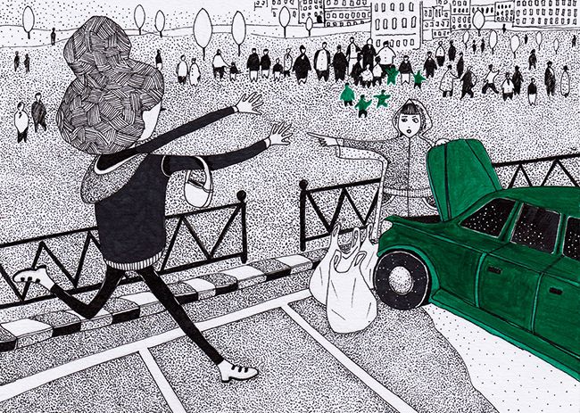 — Скорее бегите туда, — сказала женщина, стоящая рядом с припаркованным у библиотеки автомобилем. — Я как раз подъезжала и видела, как люди с пузырьками зеленки побежали в сторону «Баррикадной».