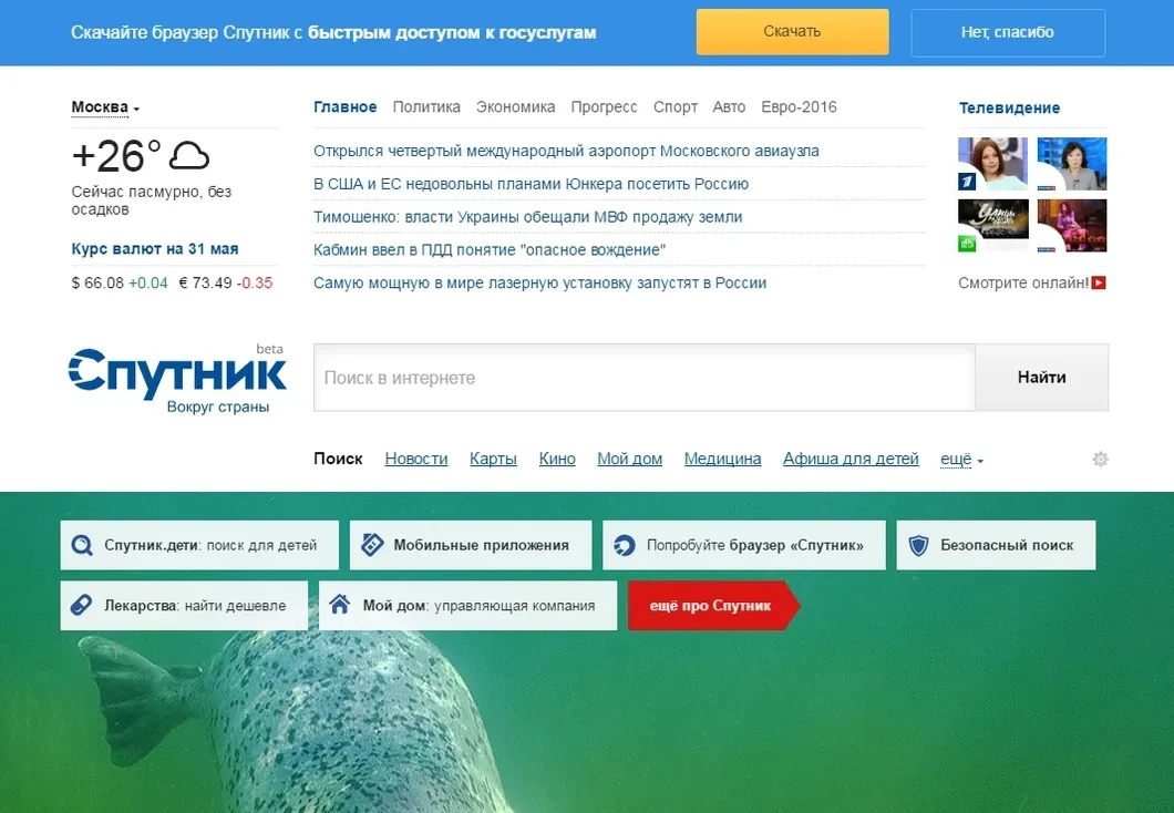 Ключевой задачей, которую инвесторы поставили перед проектом, было достижение 1 миллиона уникальных пользователей в месяц к концу 2015 года. Похоже, что единственная надежда поисковика когда-нибудь увидеть подобные цифры — насильственное внедрение его продуктов в быт государственных органов. Так, недавно «Спутник» анонсировал выпуск браузера со встроенной системой криптографического шифрования, основанной на отечественных алгоритмах. Предполагается, что именно госслужащие и сотрудники бюджетных организаций будут пользоваться новым браузером вместо иностранных аналогов с закрытыми модулями. Другой пример — критерии выбора счетчиков посещаемости сайтов, недавно подготовленные Минэкономразвития. Счетчик, разработанный «Спутником», планируется сделать рекомендуемым для официальных сайтов госорганов (формальный мотив такой же — безопасность).