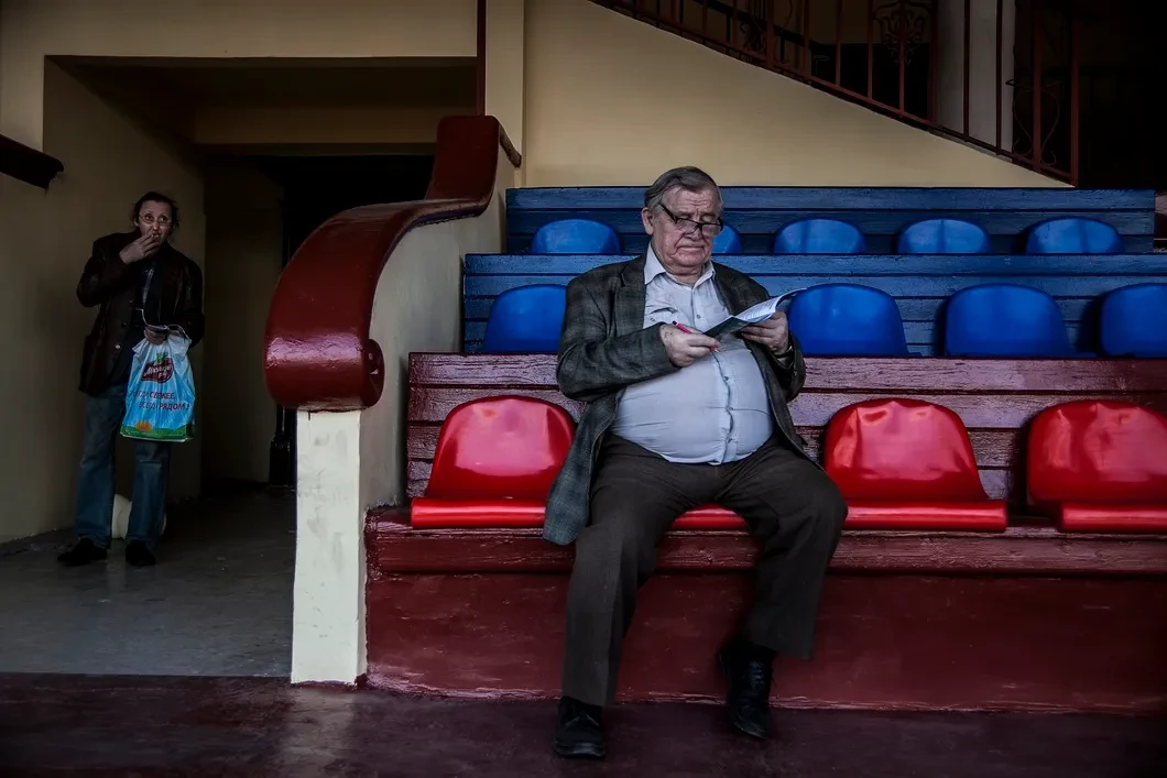 В перерывах старики достают из пакетов домашние бутерброды и чай, налитый в пластиковые бутылки. У других есть что покрепче.