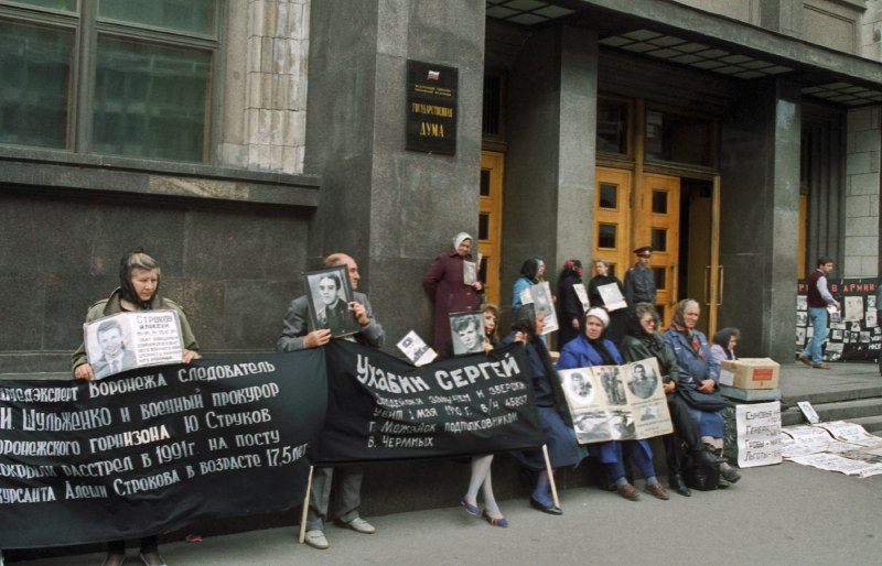 Члены Комитета солдатских матерей и родители, дети которых погибли во время службы в армии, пикетируют здание Государственной думы, 1994 годФото: Владимир Федоренко/РИА Новости А прошлым летом с крейсера «Москва» в Средиземном море пропали двое матросов — тут же завели уголовное дело «самовольное оставление части». Случай по сложности чрезвычайный. Тело одного матроса быстро нашли рыбаки, а второго семья ищет до сих пор. Его мать обратилась к нам зимой, рассказала, как общалась с экстрасенсами и чувствует, что он живой. Мы с ней обратились в консульский отдел Министерства иностранных дел с просьбой дать информацию о матросе консулам России в Греции. Государство наше само обязано было обратиться к береговым государствам за помощью в розыске: Министерство обороны и генпрокурор в МИД РФ. Моя рабочая версия: матросы могли повздорить, и кто-то их сбросил с крейсера. Хотя в таких случаях правду установить крайне сложно. Последний раз похожее несчастье было в 2002 году, когда исчез матрос в Кронштадте с катера у причала. Тогда через несколько месяцев водолазы все-таки нашли тело, и тоже невозможно было понять, что с ним произошло.