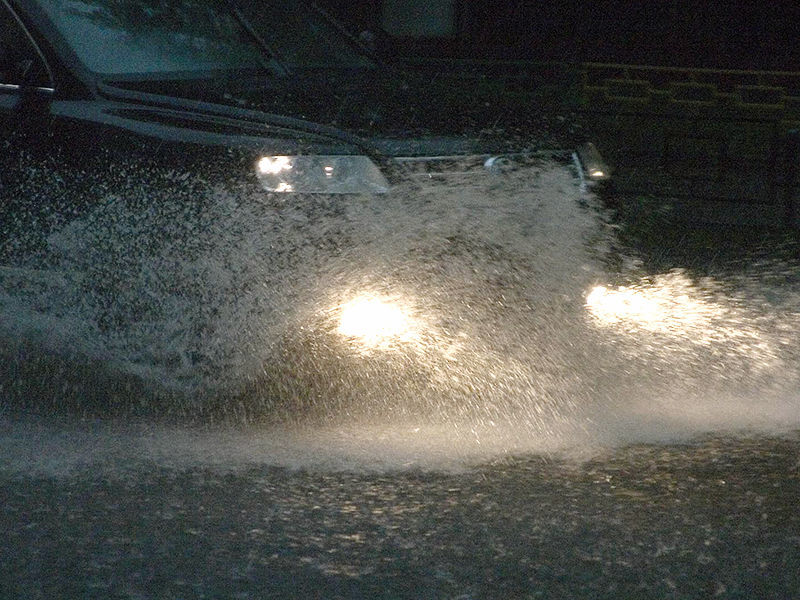 Автомобили передвигались по затопленным улицам, наполовину погруженные в воду.