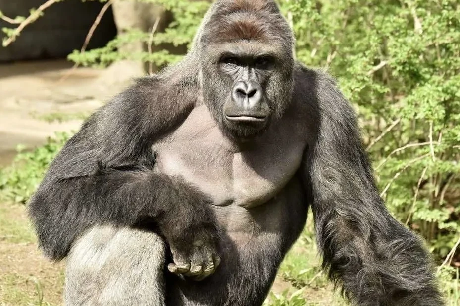 Накануне Харамбе исполнилось семнадцать лет, и он был выращен человеком — Джерри Стоунсом из зоопарка в Браунсвилле, Техас. В свои 17 лет Харамбе весил 200 кг, у него была серебряная спина — характерный признак взрослого альфа-самца, ответственного за безопасность стаи.