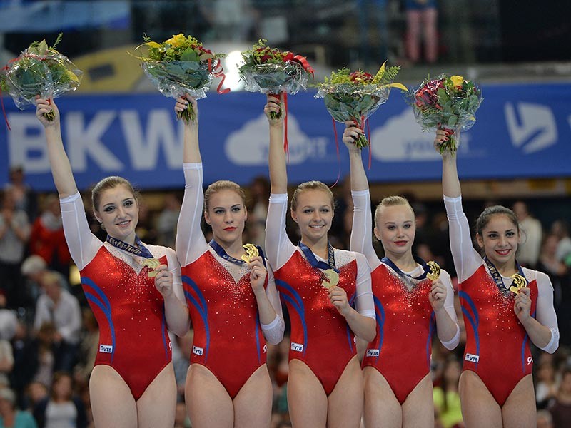 Женская сборная России по спортивной гимнастике завоевала золотые медали чемпионата Европы 2016 года, который проходит в Берне, в финале командного первенства.