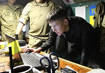 "Ночной приезд в район проведения АТО Героя Украины Надежды Савченко стал для всех неожиданностью. Однако народному депутату Украины удалось плодотворно пообщаться со многими военными, встретиться с бывшими сослуживцами и сесть за штурвал боевого вертолета", - говорится в сообщении.