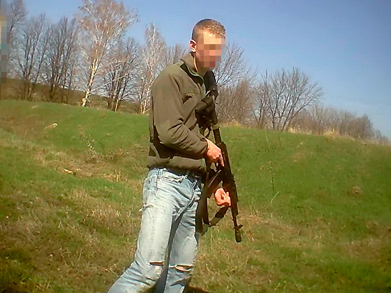 На сайте СБУ опубликованы видео и фотоматериалы, на которых, очевидно, изображен задержанный. Судя по ним, это белокожий молодой человек со светлыми короткими волосами. На фото он изображен с оружием в руках. Лицо человека рассмотреть нельзя, так как оно заштриховано.