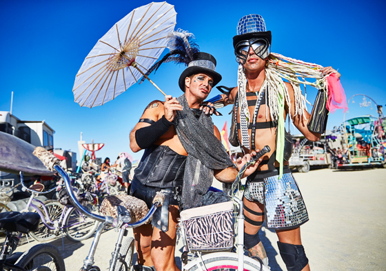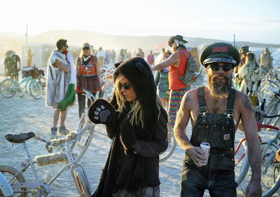 К такому фестивалю надо готовиться, конечно, — какие-то костюмчики с собой брать. А я про одежду совсем не подумал — поехал в обычной в майке и джинсах. Большинство людей, как я потом узнал, очень сильно на этот счет запариваются. Я заметил, что даже фотографы, которые на фестиваль приезжают, серьезно продумывают свой прикид. Чтобы не выделяться, чтобы быть одним из тусовки. Тогда к тебе совершенно по-другому относятся. Я вообще в какой-то момент все про работу фотографа на Burning Man понял. Когда я выходил со здоровыми камерами Canon, то чувствовал, что люди мне позируют, но выглядит это так, будто ты приехал просто на них посмотреть. Я потом выходил с невзрачной такой мыльницей, и меня всюду уже принимали за своего. Думаю, что в следующий раз я вообще с GoPro поеду. Там это самый верный формат. Цепляешь ее на себя и ходишь кругом, снимаешь.