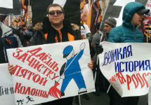 28 апреля у Центрального дома кино в Москве активисты НОДа напали на гостей и участников школьного конкурса "Человек в истории", организованного "Мемориалом". Увешанные георгиевскими ленточками нодовцы забросали детей яйцами. Писателю Людмиле Улицкой брызнули в лицо зеленкой, еще одному участнику мероприятия - нашатырным спиртом. Нападавшие кричали учительницам: "не училки, а подстилки". Милиция в происходящее не вмешивалась.