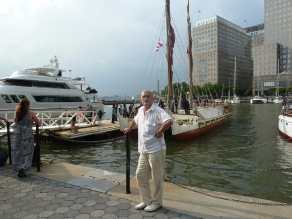 Познакомившись в 2012 году с одним из основателей PVS, Общества полинезийских плаваний, инициатором возрождения традиционного полинезийского судостроения, профессором антропологии Гавайского университета Беном Финни, я никак не предполагал, что когда-нибудь увижу его легендарное детище, прославленное двойное каноэ «Хокулеа» (Hokulea). Но 4 мая 2016 года это произошло, и мы с внуком встречали его на Манхэттене. Оно стояло в крошечной гавани North Cove Yacht Harbor, что у Всемирного финансового центра, а на его борту прибыл сам Найноа Томпсон, многолетний капитан «Хоку», а ныне президент PVS и организатор кругосветки гавайских каноэ.