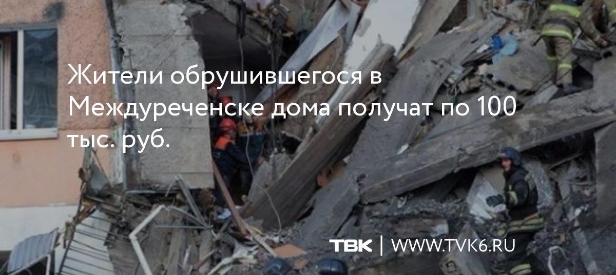 В Междуреченске Кемеровской области каждый житель, зарегистрированный в обрушившемся доме, получит по 10 тыс. руб., а 14 семей – по 100 тыс. руб.