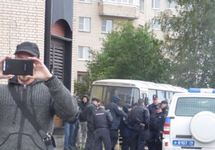 В мероприятии, заранее проанонсированном городским отделением "Солидарности", участвовали 10 членов этого движения и других активистов. Когда они прибыли к дому 20 по улице Чекистов, их уже ждало большое количество полицейских, в том числе омоновцев и оперативников в гражданском.