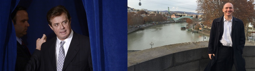 Ключевые люди команды Трампа: политтехнолог Пол Манафорт (на снимке слева) выглядывает из-за кулис во время важного выступления Трампа в Вашингтоне в апреле 2016 года, Картер Пейдж (справа) — советник по России