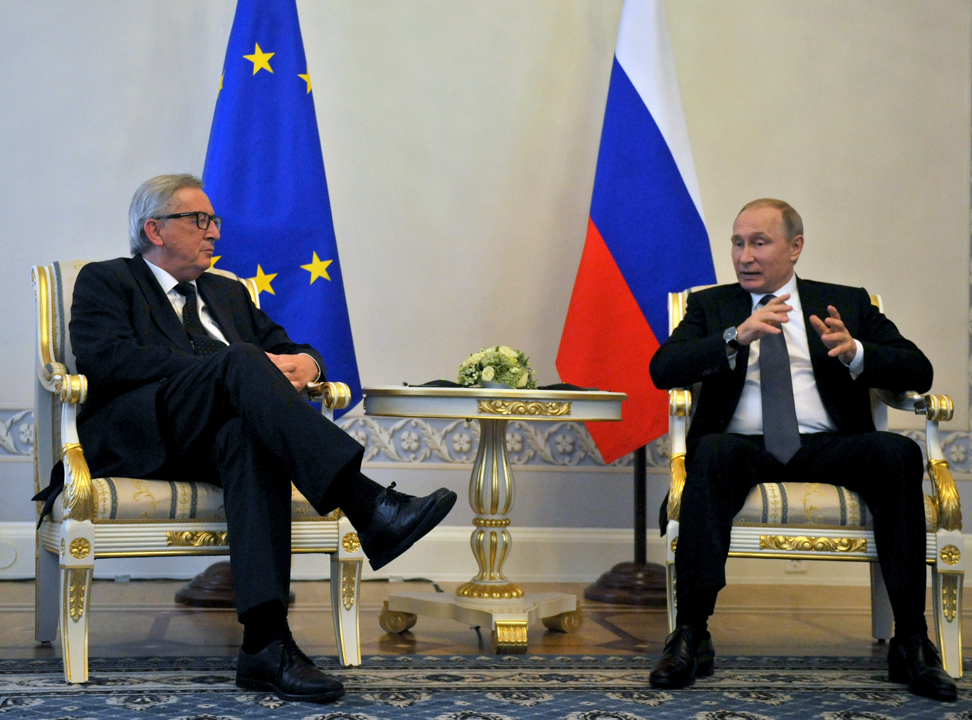 Жан-Клод Юнкер и Владимир Путин (Петербург, 16 июня 2016 года)