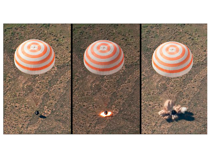 В посадочной капсуле вернулись с Международной космической станции российский космонавт Юрий Маленченко, астронавты НАСА Тимоти Копрой и ЕКА Тимоти Пик. Продолжительность пребывания в космическом полете экипажа экспедиции МКС-46/47 составит 186 суток.