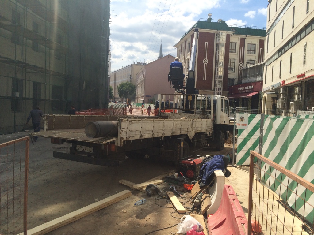 Малая Дмитровка. Работы, начатые 11 мая, ведет ООО «Стройстандарт». Эта же компания проводила здесь благоустройство в 2015 году