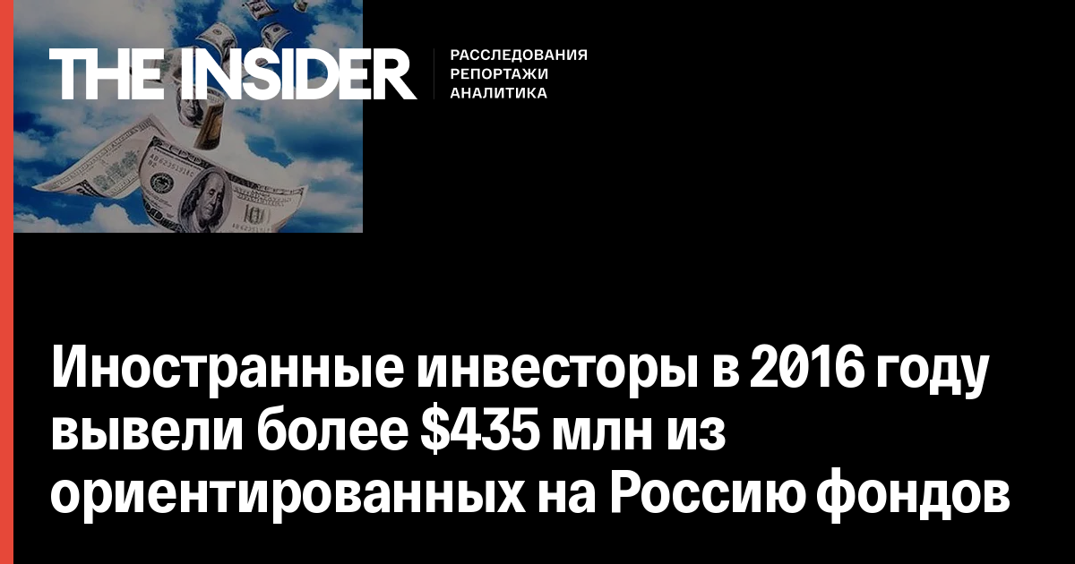 Иностранные инвесторы в 2016 году вывели более $435 млн из ориентированных на Россию фондов