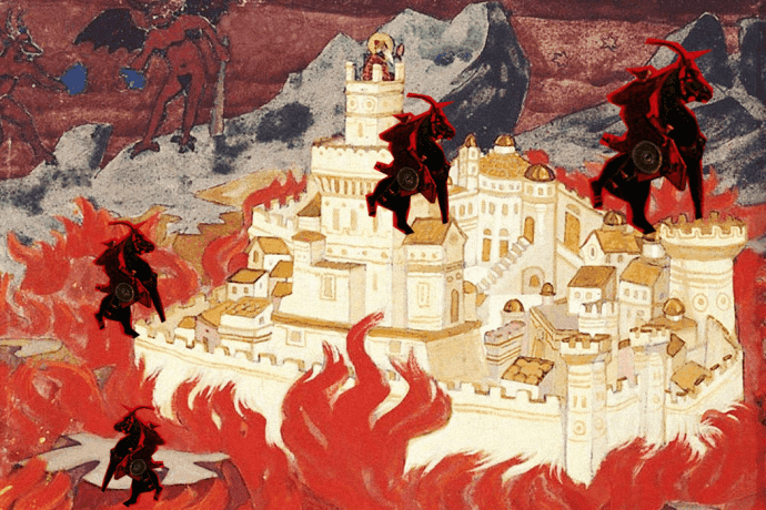 На рубеже XIX — XX веков общественное сознание стала будоражить идея о скором наступлении некой новой эры, которая приведёт к тому, что человек кардинально поменяет способ своего существования, откроет истинные знания о природе мира и раскроет назначение и смысл человеческой жизни. Движение в новую эру Водолея в целом назвали Нью Эйдж: основой нового Эона, по мнению последователей движения, должно стать духовное развитие человека, раскрытие его эфирной сущности, обретение высших знаний и сверхспособностей. Эту идею продвигали и продвигают многие мыслители, в том числе Елена Блаватская и Алистер Кроули, о которых мы уже писали. Они предложили пути совершенствования человека на основе синтеза многих эзотерических (то есть касающихся не внешней, а внутренней жизни человека) знаний. Николай и Елена Рерихи были одними из тех, кто верил в пришествие новой эры и хотел принять участие в её реализации. Знакомство в 20-х годах с теософским учением мадам Блаватской стало отправной точкой не только для развития рериховского религиозно-философского течения Агни-йога (или Живая Этика), но и во многом определила направление мысли философии русского космизма. Её представители считали, что не за горами время, когда человек изменит способ существования и станет ближе к своей истинной сущности.