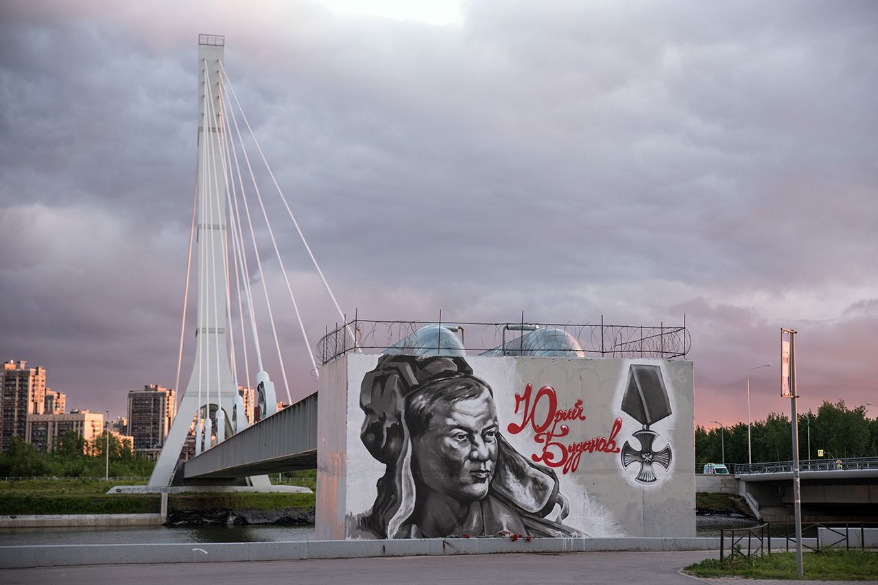 Мост Буданова. 9 июня недалеко от моста появилось граффити с изображением Юрия Буданова — фигуранта одного из самых громких дел о преступлениях российских военных в Чечне. В 2003 году полковник Буданов был осужден и лишен звания по обвинению в похищении и убийстве 18-летней чеченки Эльзы Кунгаевой. В 2011-м он был убит. Через несколько дней портрет испортили — Буданову закрасили глаза; к 23 июня изображение полностью покрылось черной краской.