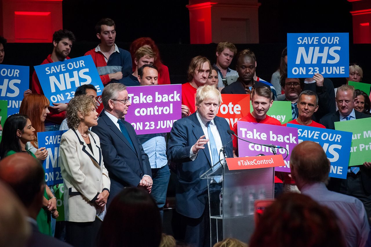 Организаторы мероприятия выводят на сцену десятка два активистов и раздают им плакаты с основными слоганами кампании: «Наши деньги — наши приоритеты», «Спасем NHS» (британскую систему здравоохранения — прим. «Медузы»), «Вернем контроль». На ярком и динамичном фоне появляются главные лица кампании за выход из ЕС: рядом с Борисом Джонсоном и Майклом Говом стоят бывший министр спорта Кейт Хоуи и министр по вопросам занятости населения Прити Патель. Их речи строятся вокруг наиболее спорных пунктов референдума, а наибольшее одобрение и бурные аплодисменты вызывают высказывания: «Мы не покидаем Европу — мы покидаем Европейский союз», «Это союз не для рабочих людей, а для элиты с деньгами», «Мы пятая по величине экономика в мире, и мы справимся без участия тонущего ЕС», «Мы будем торговать не только с Европой, но со всем миром», «Мы хотим видеть нашу страну идущей в будущее с надеждой, уверенностью, независимо», «Это наш единственный шанс — вернуть себе контроль!»