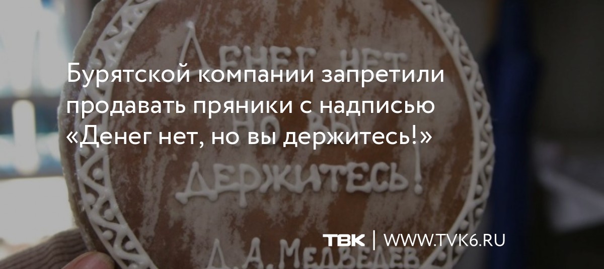 Компания «Байкальский пряник» из Улан-Удэ прекратила производство пряников со знаменитой фразой Дмитрия Медведева «Денег нет, но вы держитесь!», сообщает FlashSiberia.