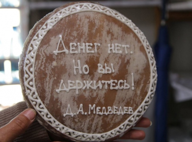 «Хотел сегодня купить прославившийся вчера на всю Россию и соседние государства пряник "Денег нет, но вы держитесь!", а его уже нет в продаже. Совсем нет."Байкальский пряник", испугавшись внезапно свалившейся на него славы, с сегодняшнего дня вдруг перестал выпекать мем Дмитрия Медведева.