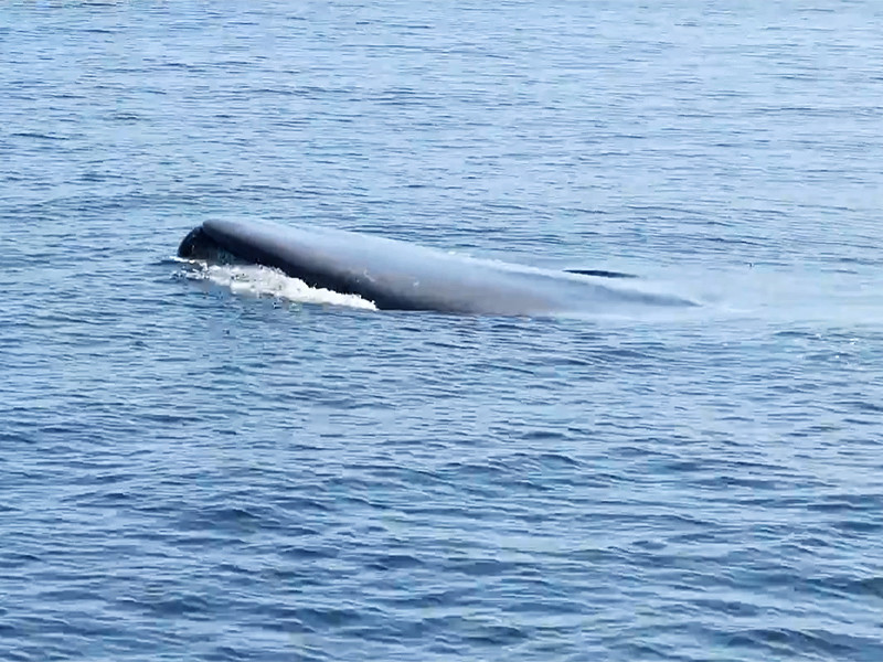 Наблюдатели сняли на видео попытки спасателей освободить голубого кита. По их оценкам, более 60 метров снастей намотались на хвост морского животного.