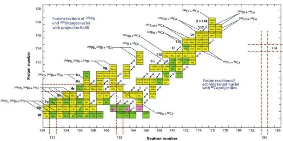 В нашей стране начиная с 1950-х годов работы по синтезу новых элементов на ускорителях тяжелых ионов проводились в Дубне под руководством акад. Г. Н. Флёрова (1913–1990) — основателя этого направления. Сейчас эти работы проводятся под научным руководством акад. Ю. Ц. Оганесяна. В мире существует лишь несколько ускорителей и установок, где можно получать трансактиноидные элементы (т. е. элементы с зарядом ядра Z более 103).