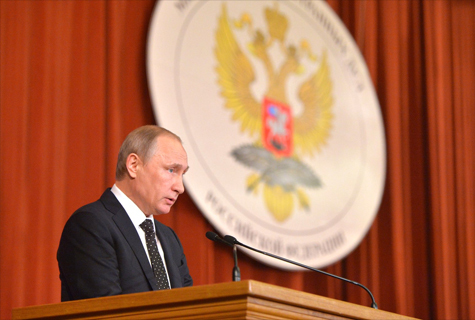 © Пресс-служба Президента России Сегодня, 30 июня, в Москве, выступая на совещании послов и постоянных предстаивтелей РФ, президент Владимир Путин призвал противодействовать информационной монополии западных медиа, а также фальсификации истории и распространению ложных сведений о России.