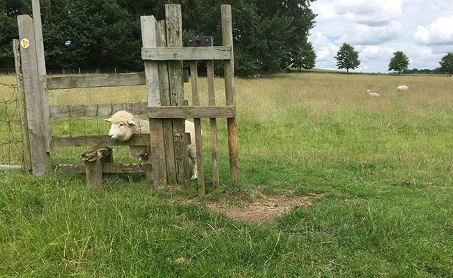 Овца, которая паслась в поле со своим стадом, застряла в куске ограды. Прохожие, увидев нелепую сцену, вызвали подмогу. Все это произошло 30 июня в графстве Хартфордшир (Великобритания).