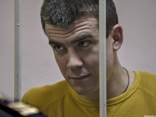 Слева направо: Денис Луцкевич, Алексей Полихович и Степан Зимин. Все они получили по три с половиной года несмотря на разницу в сроках по отдельным статьям. Фото: Александр Барошин