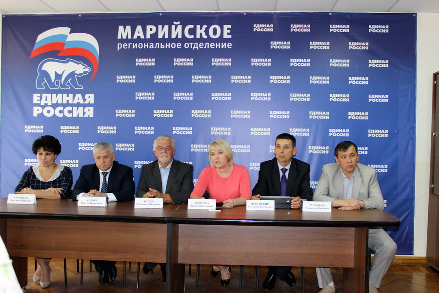 1 июля в Марийском региональном отделении «Единой России» состоялась пресс-конференция кандидатов, которые представят партию на выборах в Государственную Думу. Кроме Светланы Солнцевой, Виктора Кидяева, Ларисы Яковлевой и Александра Пекунькина, вошедших в региональный список и ставших участниками избирательной кампании по Марийскому одномандатному округу № 22, с журналистами общался секретарь регионального отделения партии Владимир Мухин.