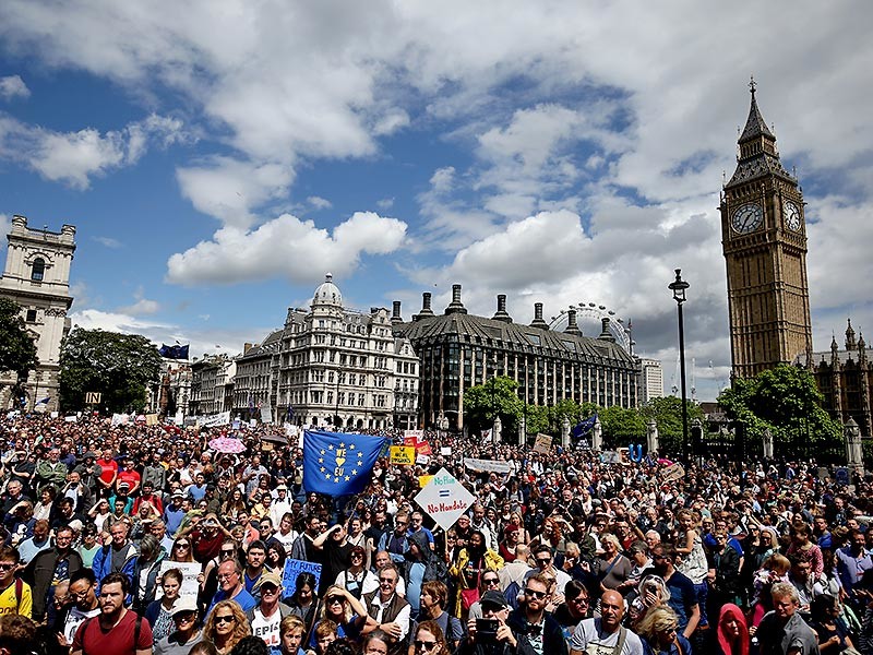 Десятки тысяч жителей Лондона в субботу вышли в центр города на марш против Brexit, передает Sky News. По данным Русской службы ВВС, это наиболее массовая акция протеста после референдума, на котором с небольшим преимуществом победили сторонники расставания с Евросоюзом. При этом жители некоторых регионов и многих крупных городов, включая и Лондон, голосовали против выхода из ЕС.