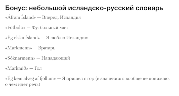 И еще немного для вдохновения: текст от нашего внештатного автора из Исландии о том, что там творится во время Евро. И превью с разговорником!