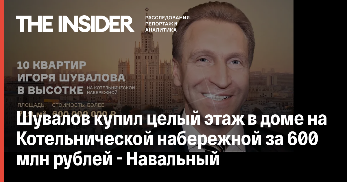 Шувалов купил целый этаж в доме на Котельнической набережной за 600 млн рублей - Навальный