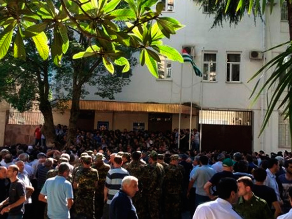 Собравшиеся потребовали отставки министра внутренних дел Абхазии Леонида Дзапшба, и, не дожидаясь ответа президента страны Рауля Хаджимбы, начали штурм здания МВД. С помощью троса и автомобиля они выломали ворота и прорвались во двор МВД республики.