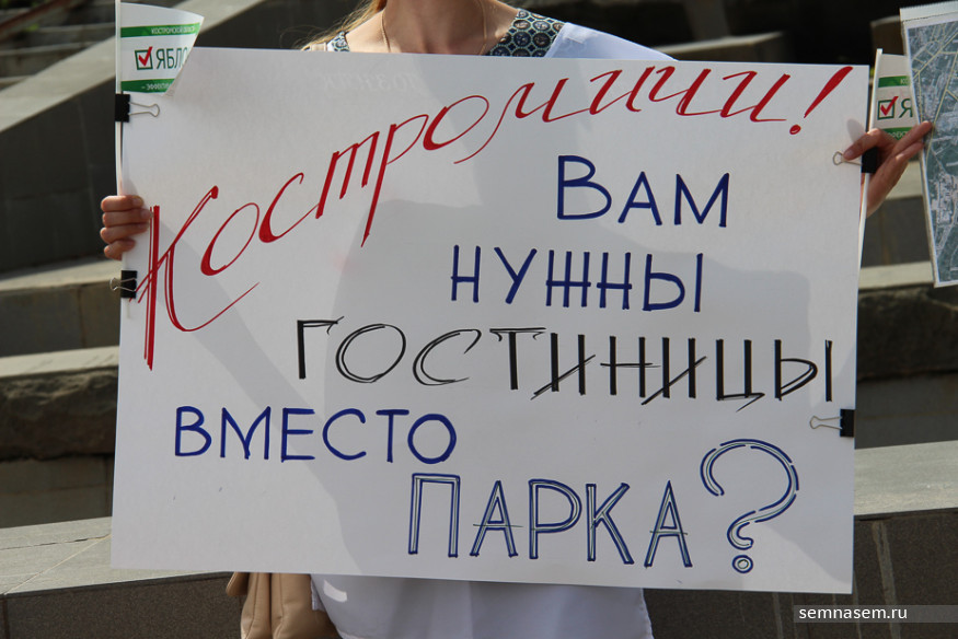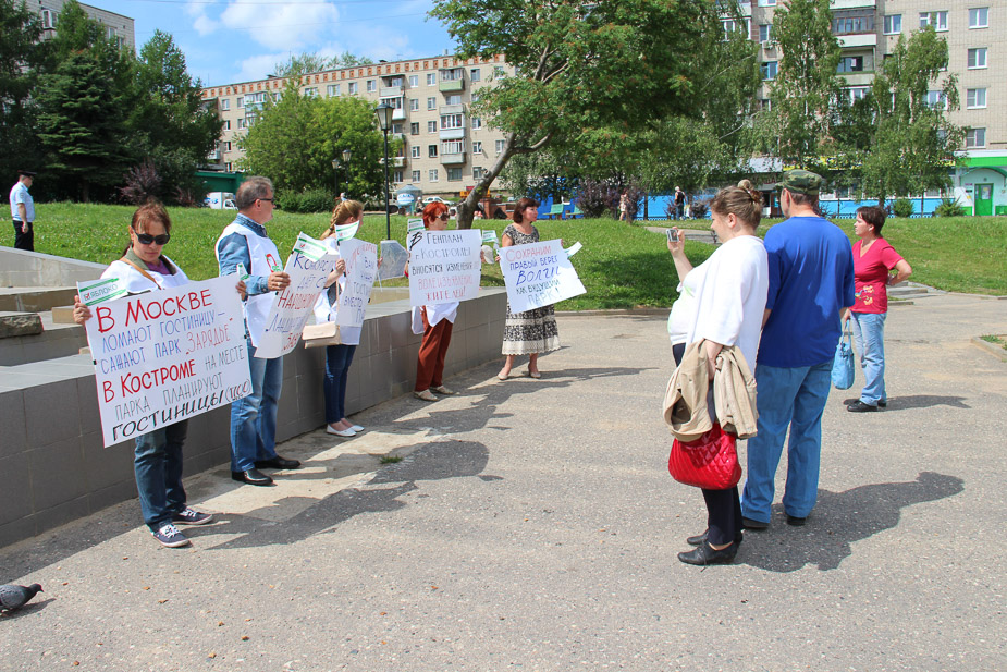 Активисты экодвижения «Во имя жизни» и представители партии «Яблоко» 7 июля провели пикет против застройки зеленой зоны на набережной Волги в Заволжском районе Костромы, — передает корреспондент «7х7».