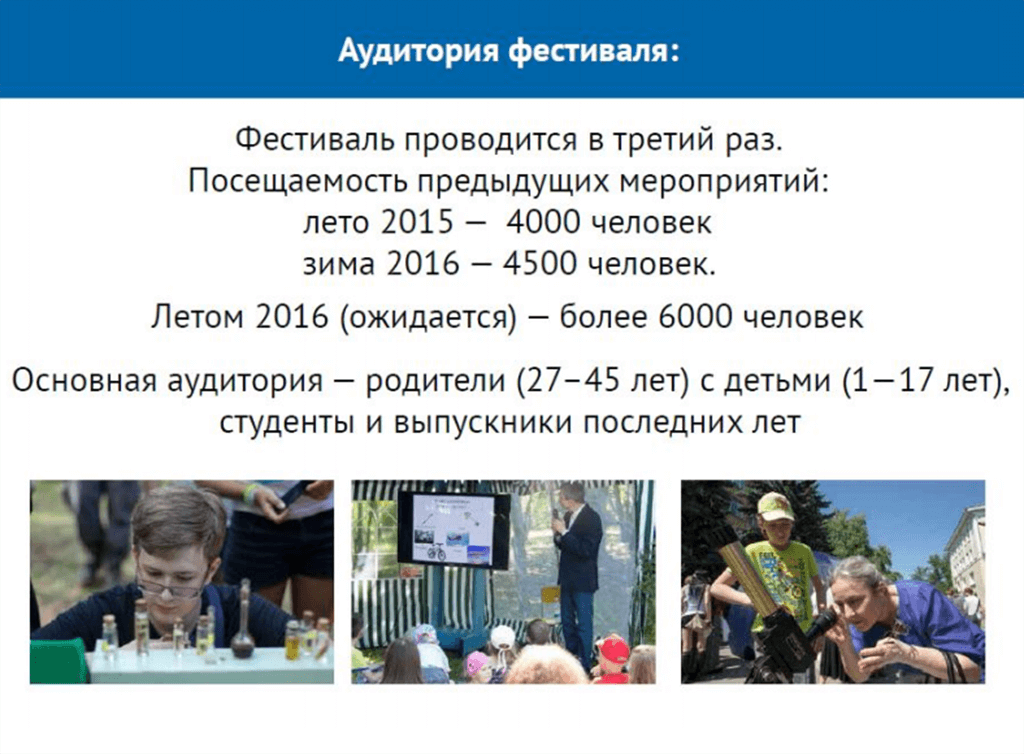 80% успеха краудфандинговой компании фестиваля были в том, что у проекта была своя аудитория. Уже два года команда «Лобачевский Lab» делает научно-популярные мероприятия, у которых появились постоянные участники, и когда эти люди увидели просьбу о помощи, они откликнулись. Если у вас нет своей аудитории, но при этом есть возможность заявить о себе заранее, сделать презентацию проекта или мероприятия, лучше это сделать.