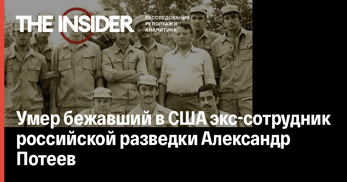 Бывший полковник российской внешней разведки Александр Потеев, бежавший в США и заочно осужденный на 25 лет за госизмену, умер, сообщает «Интерфакс» со ссылкой на источники. Служба внешней разведки РФ не комментирует эти сообщения.