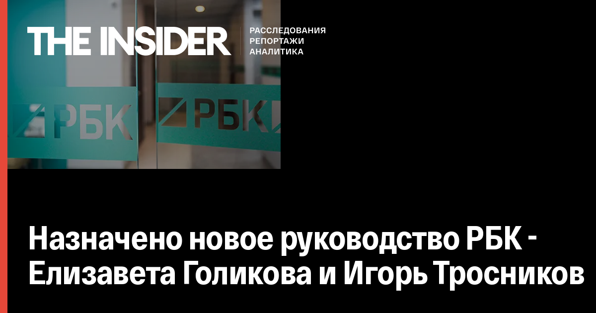 Назначено новое руководство РБК - Елизавета Голикова и Игорь Тросников