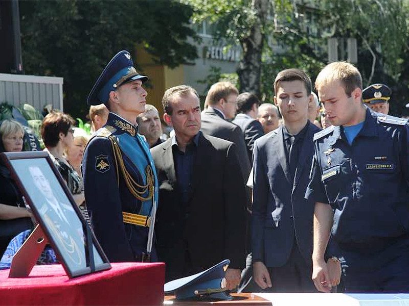 12 июля на центральной площади Кореновска прошла торжественная церемония прощания с летчиком, в которой приняли участие сотни горожан, официальные лица, родные и сослуживцы погибшего. Закрытый гроб с телом погибшего был установлен для прощания возле стационарной сцены, сообщает пресс-служба администрации Кореновского района, Военный оркестр Южного военного округа исполнил траурные марши. На площади выстроилась рота почетного караула и весь личный состав воинских частей Кореновского гарнизона.