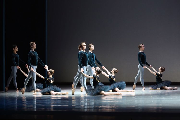 Каждый поворот головы и взгляд глаза в глаза выверен с гомеопатической точностью. Паузы работают как продолжение движения. Основа сольной партии — в которой царствует Виктория Терешкина — это именно переживание длящейся позы и точно рассчитанные микропаузы. На протяжении 25 минут торможение и лексическая пробуксовка чувствуются лишь изредка — например, в репризе Andante. Но придираться к балету совсем не хочется: столь интеллектуально изысканную и стильную работу в Мариинском не приходилось видеть уже очень давно.