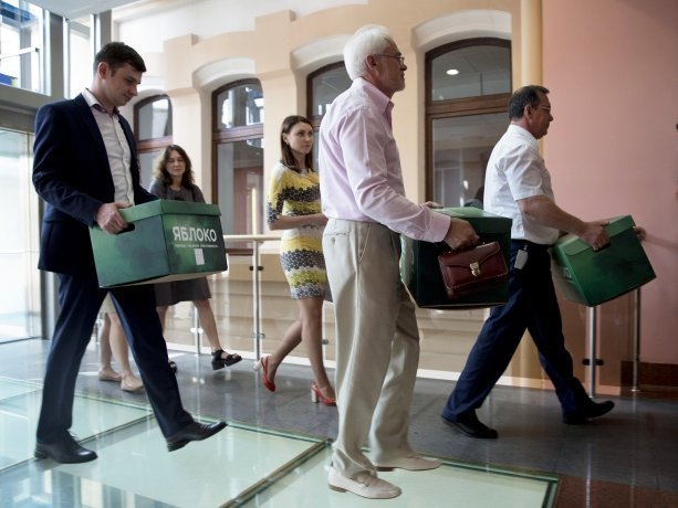 Представители партии "Яблоко" передают в ЦИК документы для заверения списков кандидатов в Госдуму РОД "Яблоко" Центризбирком завершил прием документов от партий, намеренных участвовать в думских выборах. Из более чем 70 зарегистрированных партий участвовать в выборах решили «всего» 24, но в итоге правильно подать документы смогли только 22. Причем из них 14 имеют право выдвигать список и кандидатов без сбора подписей, а десяти партиям придется еще доказать свое право участия в кампании.