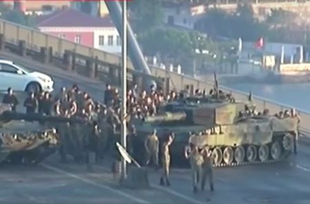 Мятежники сдаются на мосту через Босфор. Кадр Sky News